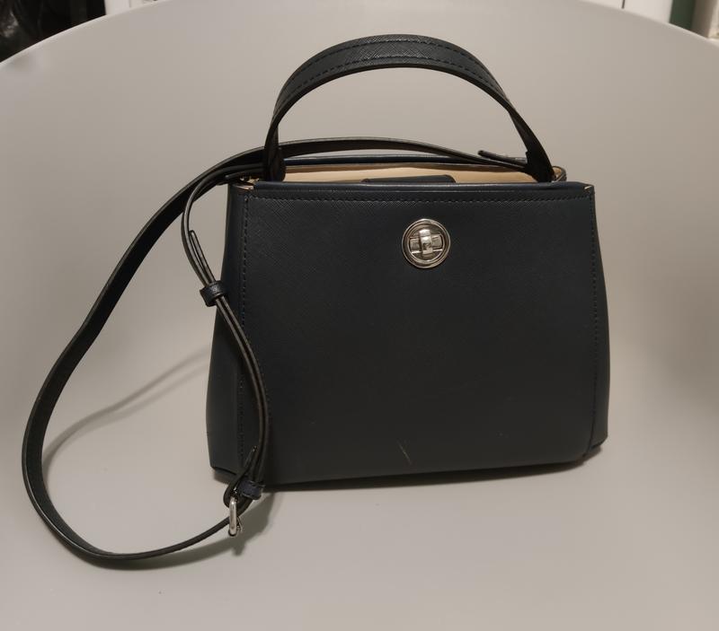 Сумка Зара сделана из плотного кожзаменителя темно синего цвета