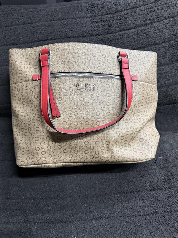 Нова сумочка Guess. бежево-червона з додатковими відсіками в середині та карманчиком на застібці. Заміри на фото