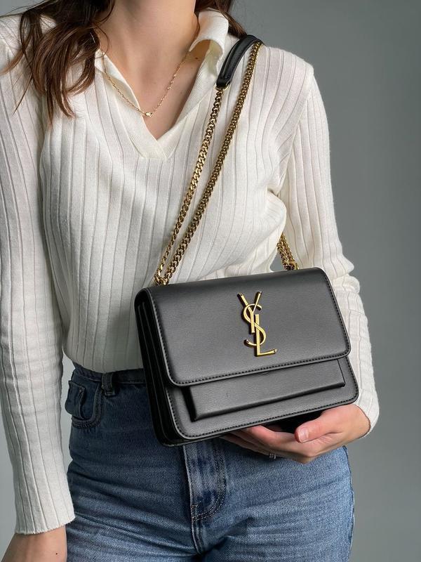 Сумка saint medium sunset in smooth leather black/silver laurent или gold