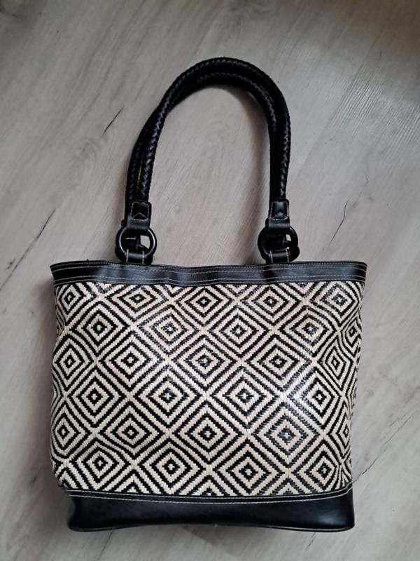 Искусственная кожа+ соломенные вставки 1 большое отделение 1 аармапчик на замочку закрывается на кнопку магнит размер 36 см на 30 см бокова сторона 14 см ручка 65 см
