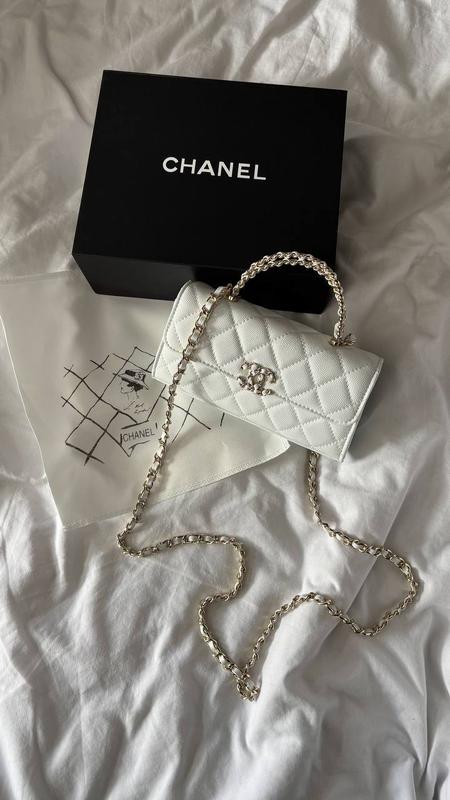 Chanel Mini Flap Handle Bag White Caviar with Silver Арт. 7922 • Материал : кожа • Размер : 18x10x4,5 • Полный комплект Подпишись, чтобы следить за новинками Наличие уточняйте Наложен платеж по подписке 200 грн Обмен, возврат