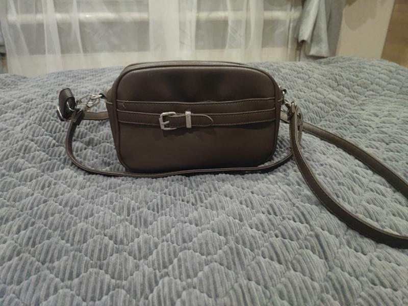 Женская сумка коричневого цвета. Есть короткий и длинный ремешок. Очень удобная в использовании.