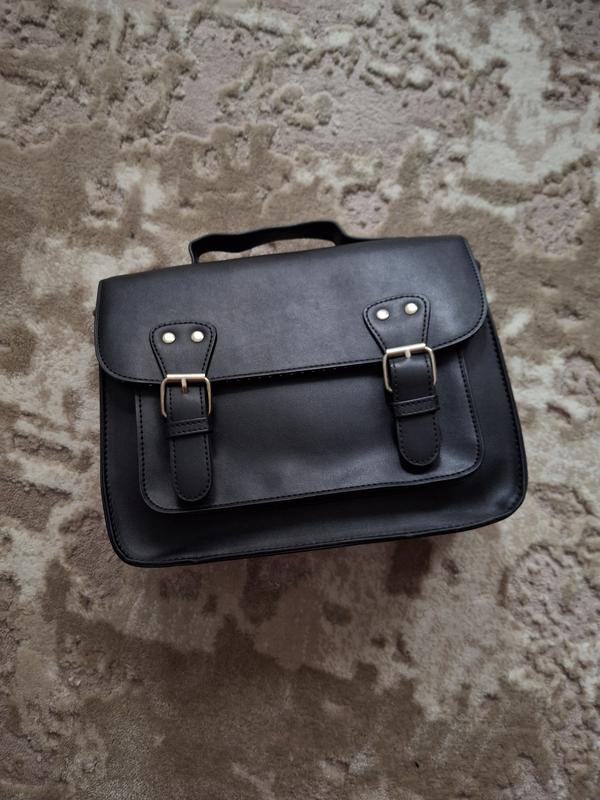 б/у ношена несколько раз черная кожаная сумка 26 × 20 см внутренняя подкладка в идеальном состоянии но фурнитура кнопки и кольце на ремешке немного поцарапаны по всем деталям в дырэкт