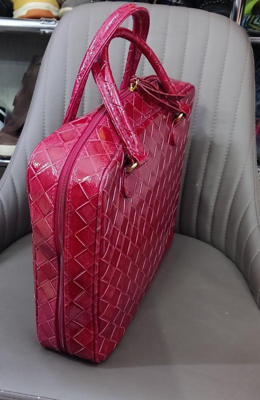 Бордова сумка Estee Lauder из глянцевой экокожи может использоваться в качестве сумки для ноутбука, чехла для макияжа или сумки-тоут размер 35*25*8 см состояние идеальное как новое в оригинале
