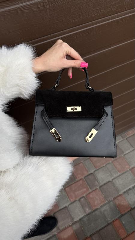 НОВИНКА Код: 5262 Производство: Украина. Цвет: Черный. Материал: Эко кожа / Натуральная замша Одно основное отделение. Короткая ручка/ плечевой ремешок. Внутренний карман,карман на молнии. Размеры: 24/20