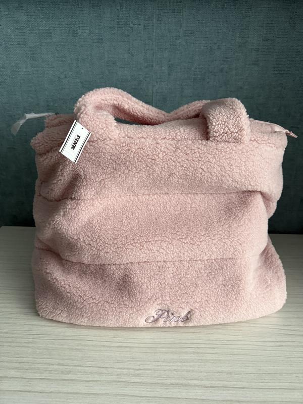 Плюшева сумка Victoria’s Secret PINK, оригінал. Стьбана сумка-тоут для зимових прогулянок. Має підкладку та дві внутрішні кишені. Розмір: ширина 40 см х глибина 20 см х висота 33 см Колір - рожевий (Pink).