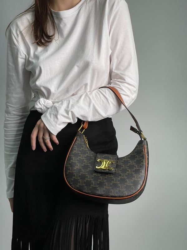 Сумка celine medium ava triomphe bag in triomphe canvas and calfskin tan