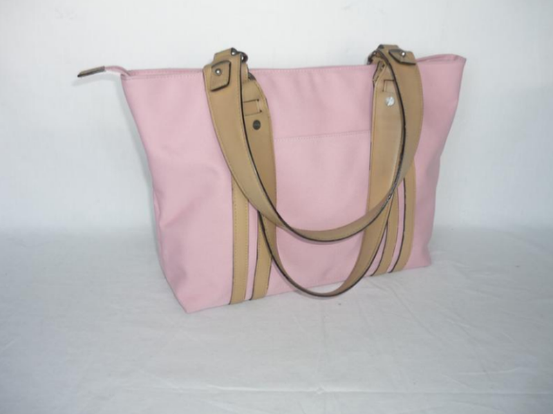 Esprit - производство Германия. Качественная сумка розового цвета, подойдет для документов формата А 4. Материал - полиэстер, ручки и декор - поливинилхлорид. Сумка закрывается на молнию, имеет два отделения, карманы на молниях, накладные карманы, держатели для ручек. На передней стенке - накладной кармашек. Ручки съемные, длина - 55 см.; дно имеет - 4 ножки-фиксаторы, на кольцах клеймо бренда. Сумка не новая, присутствуют не значительные признаки пользования на углах и на торцах ручек, грубых дефектов отсутствуют. Сумка практична в пользовании, ручки снимаются и сумку можно стирать. Габариты: высота - 26 см, длина - 31 см, глубина - 11 см.