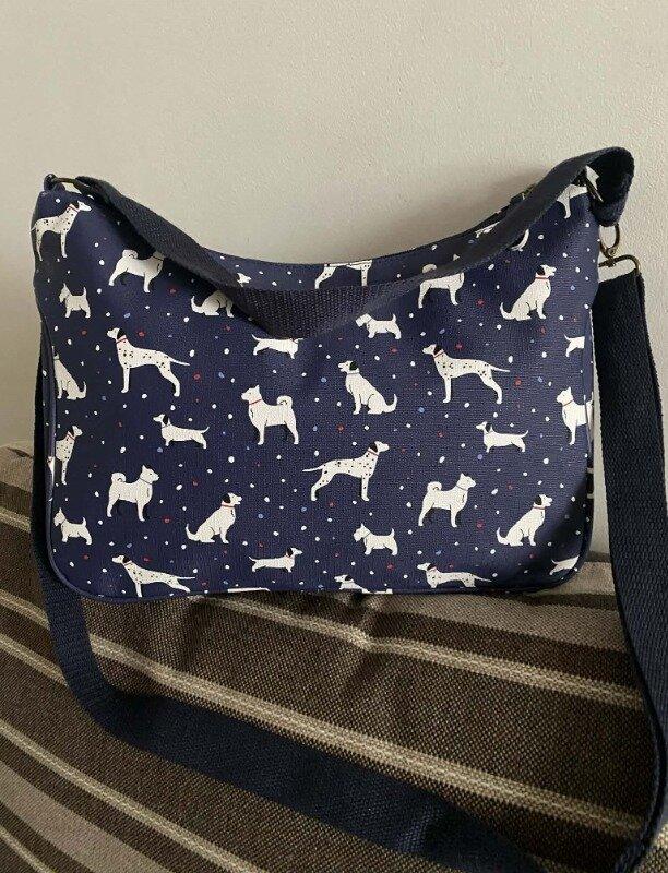 Текстиль с водонепроницаемым покрытием. Без признаков пользования. Вместительная. 23,5/34см, дно 12см, ремень 145см; 50см.
