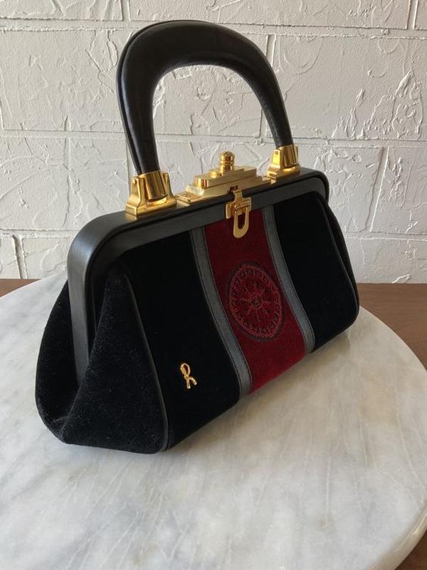Культова красуня Bagonghi від Roberta di Camerino. __Bagonghi: Ікона венеційського стилю Ця сумка — колекційний витвір мистецтва, що уособлює розкіш італійської моди 1950-1960-х років. Вона стала культовою завдяки принцесі Грейс Келлі. ____Ключові особливості: Ручна робота: Виготовлена у Венеції. Ексклюзивні матеріали: Використано венеційський оксамит від історичної фабрики «Bevilacqua» (заснована у 1499 році) та фурнітура 24К. Історія бренду: Засновниця Джуліана Коен отримала престижні нагороди за свій інноваційний дизайн (ефект trompe-l’oeil). Сумки її бренду носили Грейс Келлі, Ліз Тейлор та інші світові зірки. Стан: Ідеальний як нова!(з приватної колекції!). Це не просто аксесуар, а частина багатої культурної спадщини Італії) Можливо на подарунок.З часом такі речі стають тільки дорожчими!