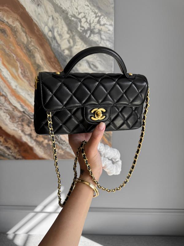 Chanel mini top handle black lambskin