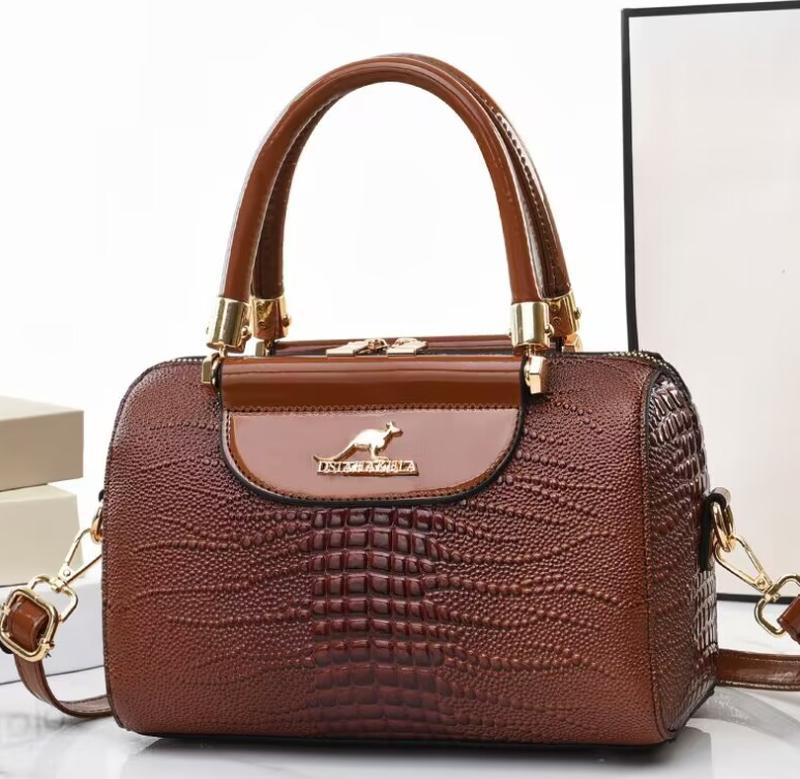 Женская лаковая сумочка кенгуру рептилия, мини сумка под рептилию коричневый