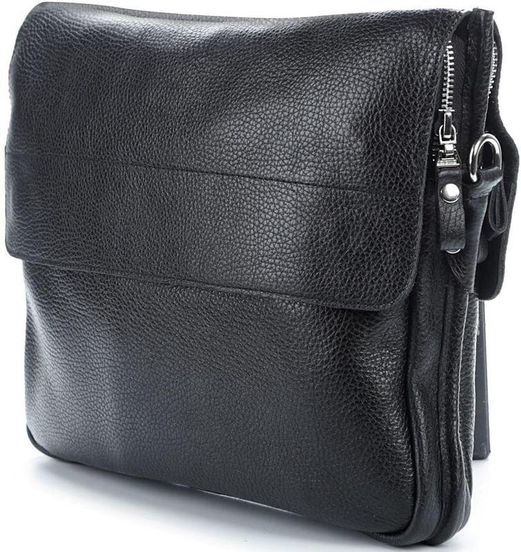 Материал: натуральная кожа высокого качества; Цвет: черный; Размеры (ШхВхГ, см): 34х26х6; Страна производитель: Украина. Эксклюзивная молодежная сумка из высококачественной кожи ручной работы от украинского производителя. Эта сумка отлично подойдет молодым людям ,которые учатся в университетах, институтах, колледжах. Так как она многофункциональна, в нее можно положить небольшой ноутбук 12-ти дюймов или планшет и еще останется место для тетрадок, документов или книг. Сумочка с оригинальным дизайном, она поделена на три автономных отделения. Два отделения закрываются клапанами с магнитами, а под ними на молнию. Отделение которое находится между двумя основными, закрывается на магнитную защелку. В 1-ом при открытии клапана, есть отделение на молнии и скрытый карман, внутри сумочки есть два накладных кармана для портмоне и телефона. В среднем отделении много места для тетрадок или документов. Во 2-ом под клапаном, так же отделение на молнии и дополнительный карман, внутри место для ноутбука или планшета, + внутренний карман на молнии для мелких вещей. Изделие выполнено полностью из натуральной кожи, внутренняя отделка - из прочного текстиля, качественная фурнитура. В комплекте есть регулируемый плечевой ремень из текстиля на карабинах.