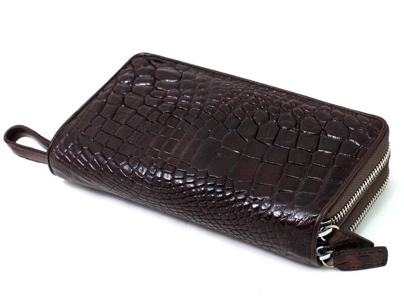 Ручная сумочка (клатч-борсетка) из кожи крокодила n-mhb-15-2-brown