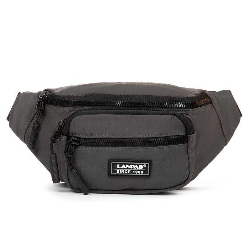 Мужская сумка на пояс/плечо Lanpad. Одно отделение, закрывается на молнию. Внутри есть боковой карман на молнии. На фасаде и на обратной стороне сумки находятся вместительные карманы на молнии. Регулируемый ремень шириной 3,7см. Размер (см) 21*15*9