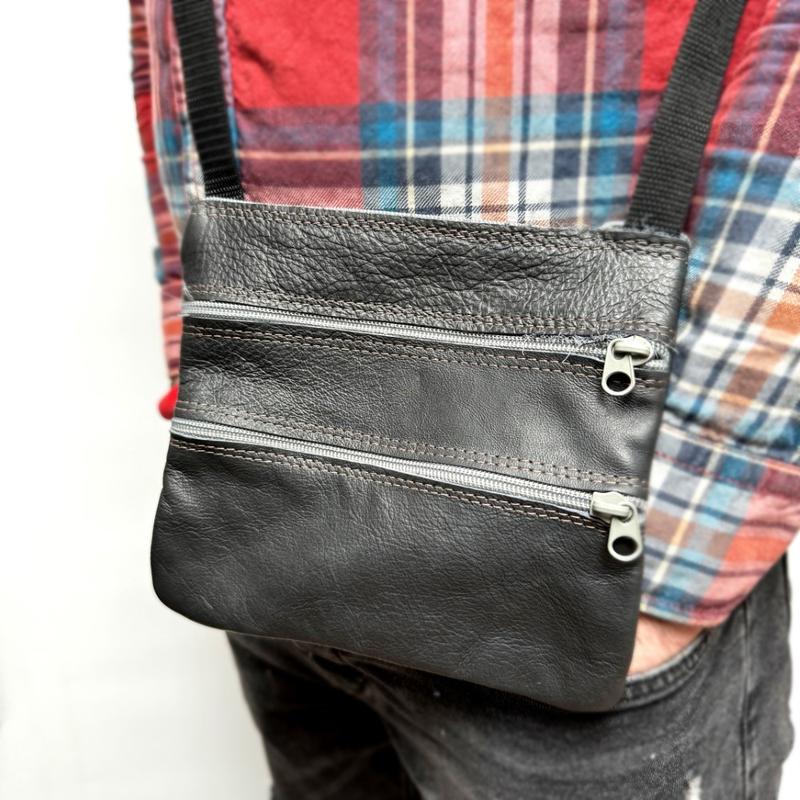 Кожаные сумки на плечо Сумки из кожи на плечо – комфортная и практичная модель популярного аксессуара. Хотите выглядеть солидно и стильно, освободить руки – купите кожаную сумку с наплечным ремнем! В каталоге Гофин интересных предложений. Чем удобна кожаная сумка на плечо Сумки с наплечным ремнем создают все ведущие модные дома мира. Секрет популярности аксессуара – в его практичности. Такую сумку можно носить двумя способами: в руке; через плечо. Купите кожаную сумку на плечо – и сможете выбирать самое комфортное положение аксессуара по своему желанию. Почему стоит купить сумку в Гофин Интернет- магазин Gofin выбрал для вас лучшие сумки с наплечным ремнем. Сумки из коллекции магазина покупают, потому что они: Сшиты из натуральной кожи. Кожа прочная, красивая, статусно выглядит. Отличаются хорошим качеством. Материал выделан как следует, швы и фурнитура надежные. Кожаная сумка на плечо выдержит любые испытания – она не боится воды, холода, износа. Со временем она становится только интереснее, винтажнее. Купить такой аксессуар можно себе, другу, начальнику, партнеру по бизнесу. Гофин предлагает большое разнообразие моделей и расцветок сумок на плечо, а также низкую цену и самую быструю доставку. Цвет: Серые; Материал: Кожаные; Для кого: Мужские; Вид застежки: Молния; По типу: Сумки;Через плечо; Страна производитель: Украина; Опт дроп: Оптом;Дропшиппинг