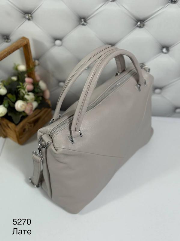 Эко кожа 32х 25х 11 В комплекте длинный регулируемый ремень. Одно отделение на молнии, разделенное пополам отделением на молнии. Внутри карман на молнии и открытый карман. На обороте карман на молнии.