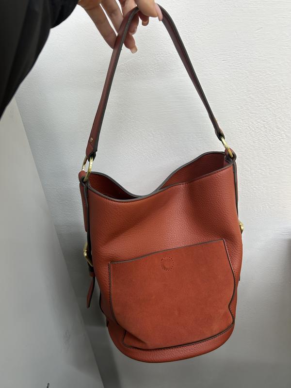 гарна сумка відерце Колір багряний, рудий, НЕ червоний Вставки зі шкіри Відправка лиш по передоплаті або повній оплаті