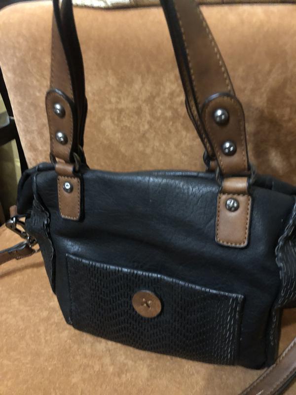 Сумочка з шкірзамінника, 2 кармана(один на замочку), 2 відділи, знімний пасок, розмір 26*22см