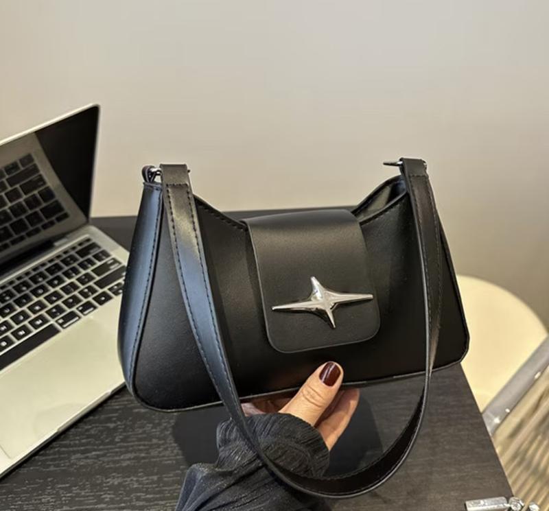 2025 Літня Нова Проста Текстурована Сумка-Патч Багет Жіноча Сумка Модний Дизайн З Замком На Плече Кросбоді - 1 колір на Вибір - Чорна