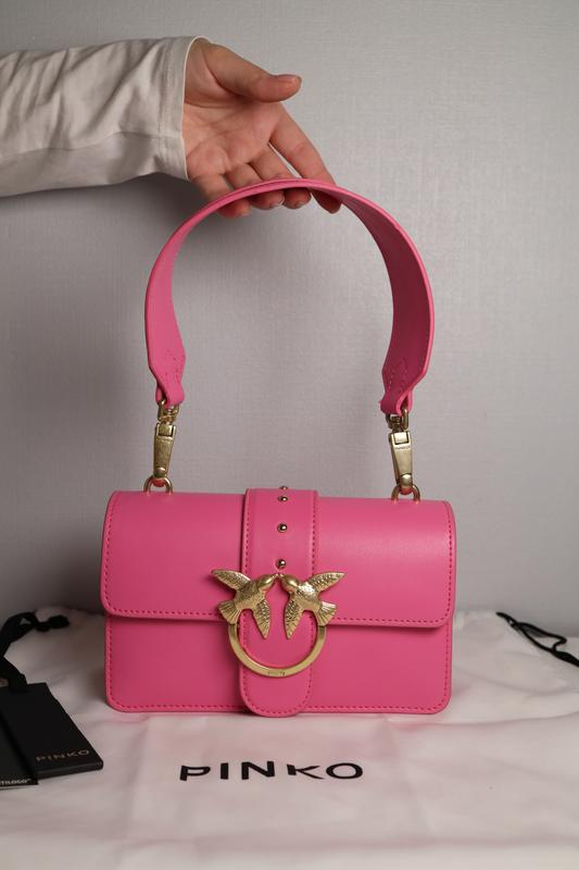 Яскрава та стильна жіноча сумка Pinko Mini Love 10 повністю нова, бірки та пильник у наявності. Жодного разу не виходила в світ. У середині два відділення, та одне на блискавці. Плечовий ремінь не подовжується, 15 cм висота, 21 см довжина, 7 см глибина.