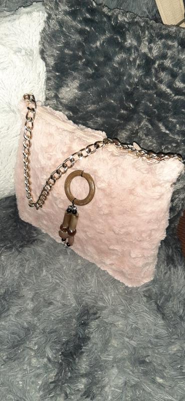 Меховая розовая сумка с цепью золотого цвета. Ручная работа. Отличный аксессуар на любимое время года.