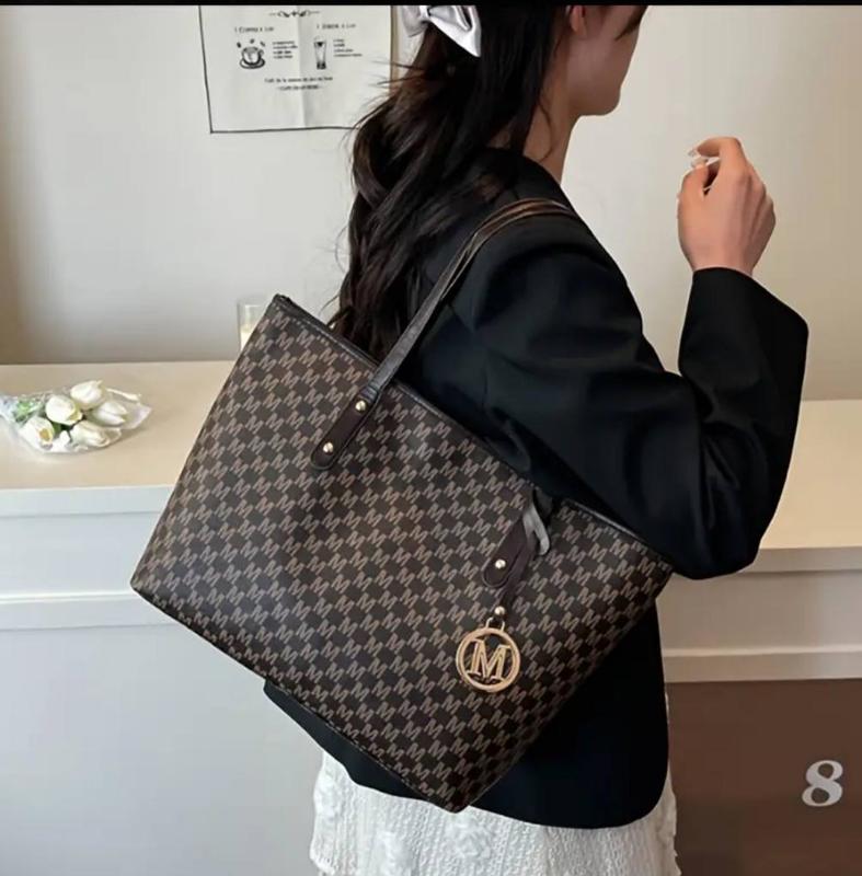 Жіноча велика сумка з розкішним дизайном, золотистими металевими елементами, логотипом золотої літери M та геометричним візерунком Довжина: 28,5 см Ширина: 11 см Висота: 24,5