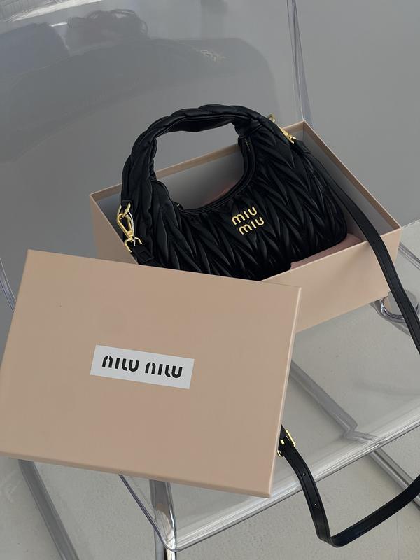 Сумка miu miu wander matelassé nappa leather hobo bag чорний є