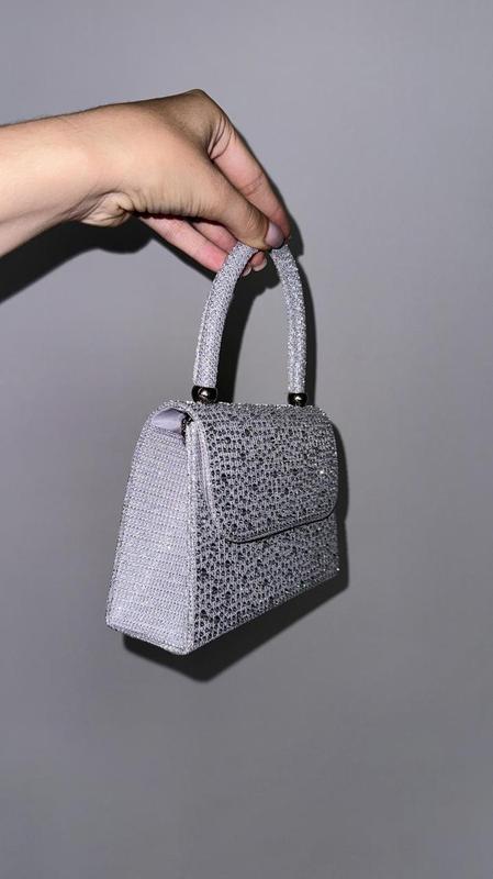 Сумочка Код 1132 Цвет: серебряный Материал: текстиль с блестками Высота без ручки 11,5 см длина 16 см Длинный ремешок в комплекте