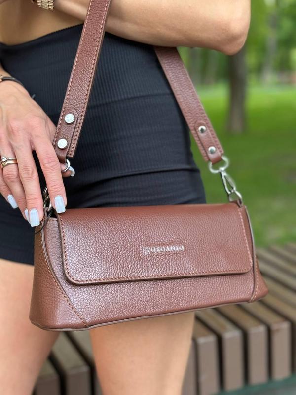 Мега стильна сумочка 🤩 Лаконичная и максимально удобная 🤩 Натуральная кожа Производство Италия 🇮🇹 Имеет короткий и длинный ремешок Одно отделение Размеры: 27,5*13 см Цвет: коричневый Арт. F-158 BRAZ D21