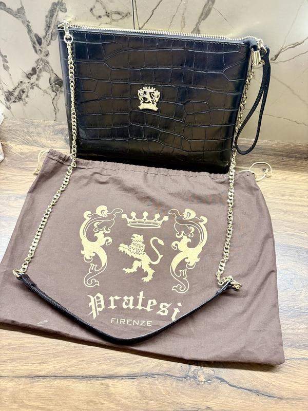 Чорна шкіряна сумка Pratesi. Заміри на фото. Довгий ремінець, пильник та ліхтарик в комплекті.