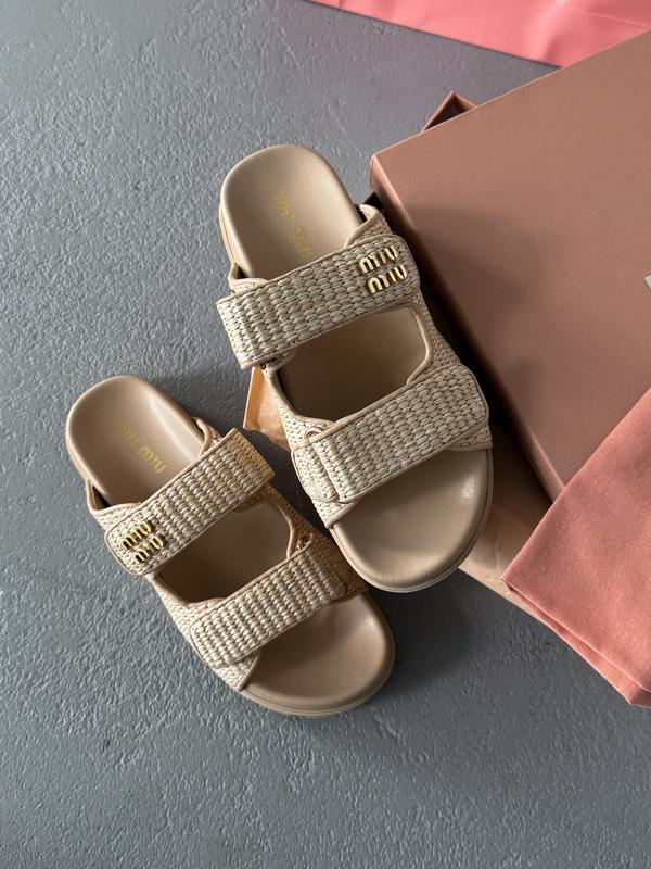 Miu women's miu crochet knit slides beige 39