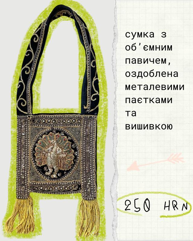 Сумка на плече з павичем металевими лелітками та вишивкою