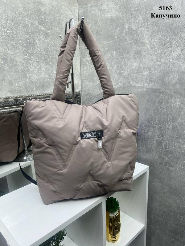 Женская стильная и качественная сумка из дутой плащевки капучино