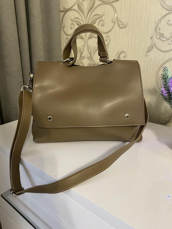 Вмістка сумка. 3 останні фото передають реальний колір. Він холодний мокко здається так цей колір називають. Вмістка, на 2 відділення Розмір: Довжина 29 Ширина 10 Висота 22 Є довгий реміцець