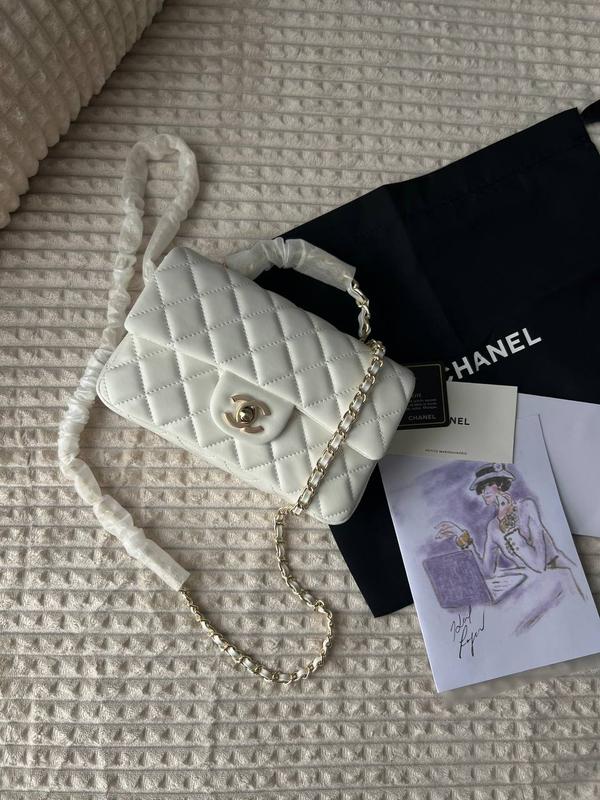 Chanel Classic Flap mini White 🤍 (арт:02049) Премиум качество⭐️ 📐 Размер: 20 х 12 х 6 см 🧵 Материал: Кожа 🔎 Описание: Сумка выполнена из гладкой простроченной кожи. Внутри одно отделение, и два кармана, один из которых на застежке. Подкладка из светлой гладкой кожи. Фурнитура металлическая золотого цвета, брендированная. Цепочка с вплетенной кожей фиксированной длины. 🛍Упаковка: брендовая коробка на магнитах, пыльник, буклеты