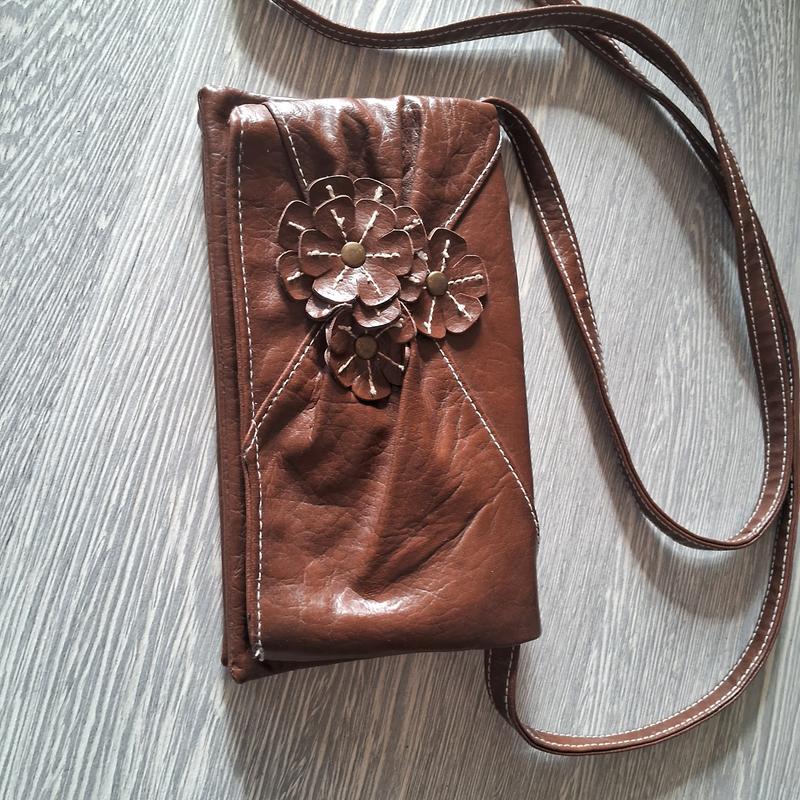 Два отделения, один на молнию в виде кошелька, иннее на всю высоту Ширина 20 Высота 11,5 Высота развернутой 22,5 Скорее искусственная кожа