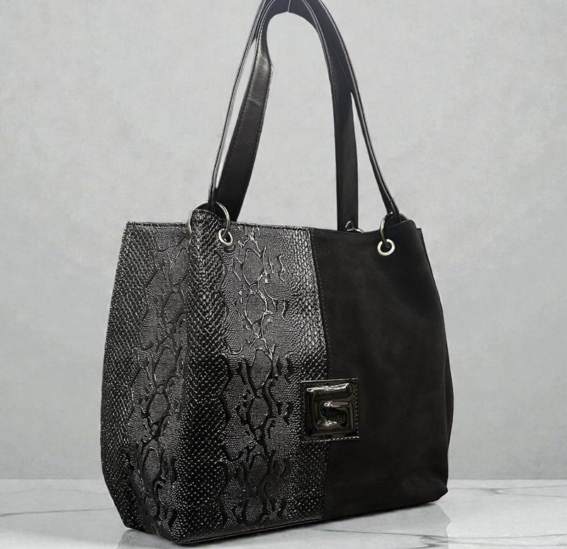 Женская вместительная черная сумка ( натуральная замша и эко кожа)