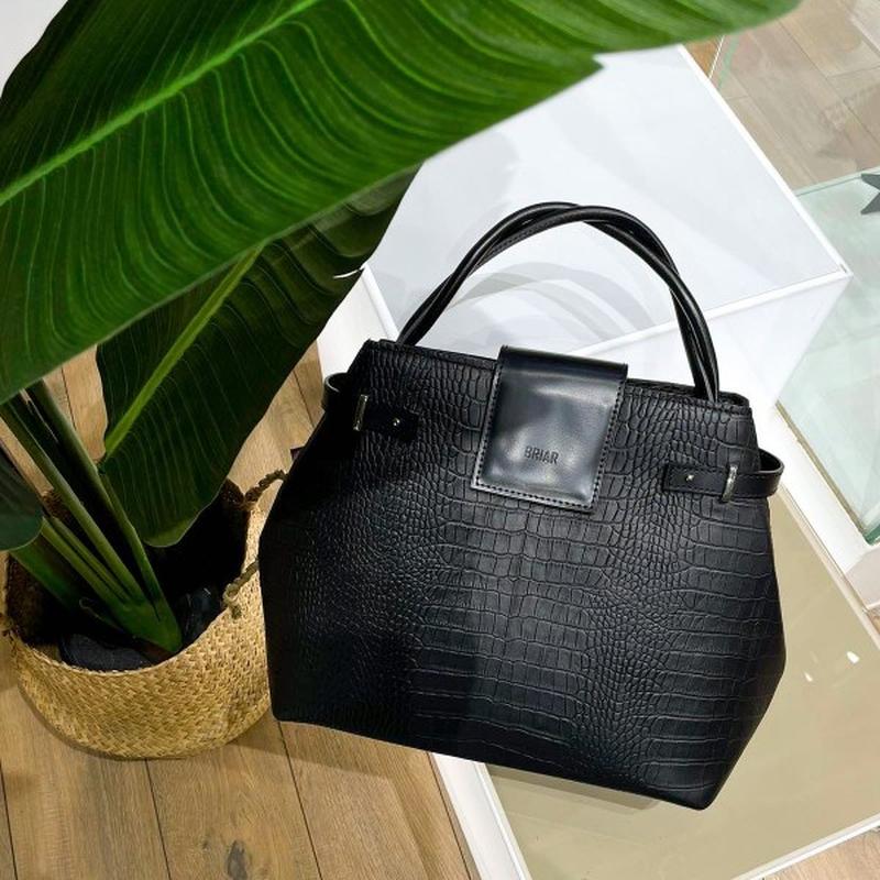 Кожаная сумка Maggie Large украинского бренда BRIAR (оригинал). Актуальная коллекция. Стан идеален. Без дефектов. Ширина 44 см. Высота 29 см. Ширина дна 14 см. Застежка: клапан на магните. Цвет: черный, как на фото. Материал верха: натуральная кожа. Материал подкладки: текстиль. Страна производитель: Украина. Есть в комплекте от сумки оригинальный брендовый брючин. Как новая. Покупалась значительно дороже на официальном сайте BRIAR при 3597 грн (скриншот прикрепила, 3 фотография). Невероятно красивая, стильная, модная, вместительная и очень удобная. Информация с официального сайта украинского бренда BRIAR: Кожаная сумка Maggie Large имеет полутвердый каркас и оригинальную застежку с клапаном на магните. Особенности модели: • Сумка на подкладке. • Цвет фурнитуры: серебро. • Сумка на ножках. • Сумка закрывается на клапан на магните. • Внутри: два отделения, посередине карман на молнии, боковой карман на молнии и накладной карман. • В комплекте длинный плечевой ремень шириной 2 см.