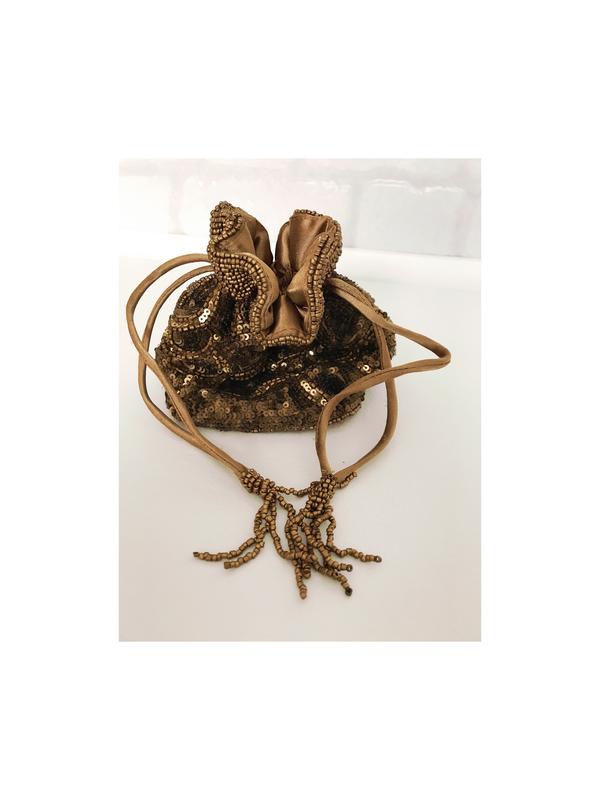 Текстильна сумочка торбинка бронзового кольору вишита бісером лелітками бусинами вінтажний...