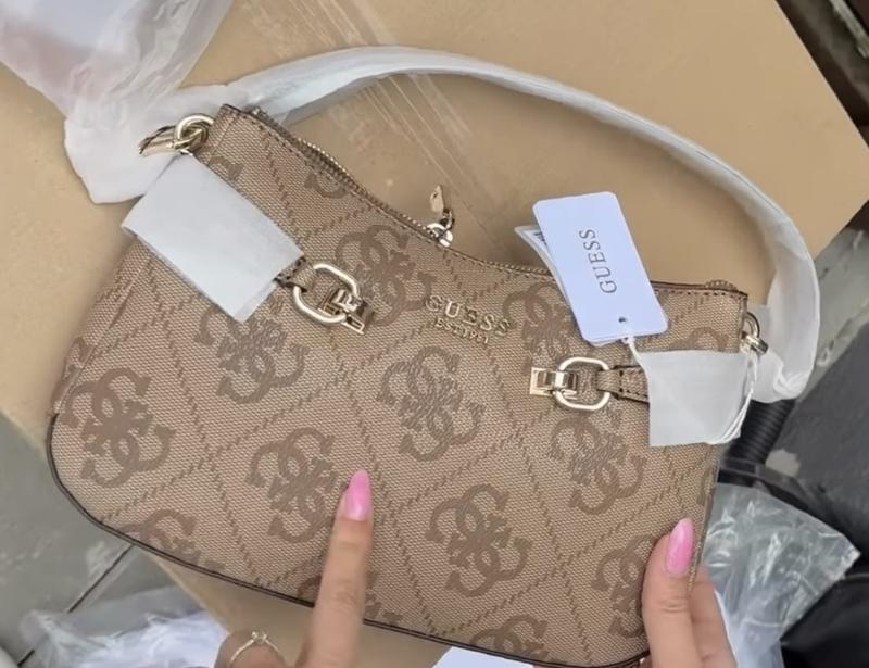 Сумочка guess lorelei колір - latte logo / brown в комплекті є довга ручка