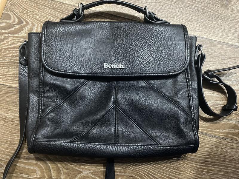 Сумка Bench, чорна, з короткою ручкою та ремінцем Оригінальна чорна сумка від бренду Bench. Практична та зручна модель із можливістю носіння в руці або через плече. Характеристики: • Бренд: Bench • Колір: чорний • Матеріал:шкіра • Формат: сумка через плече / в руку • Коротка ручка + довгий ремінець • Містка та зручна у використанні Стан: хороший