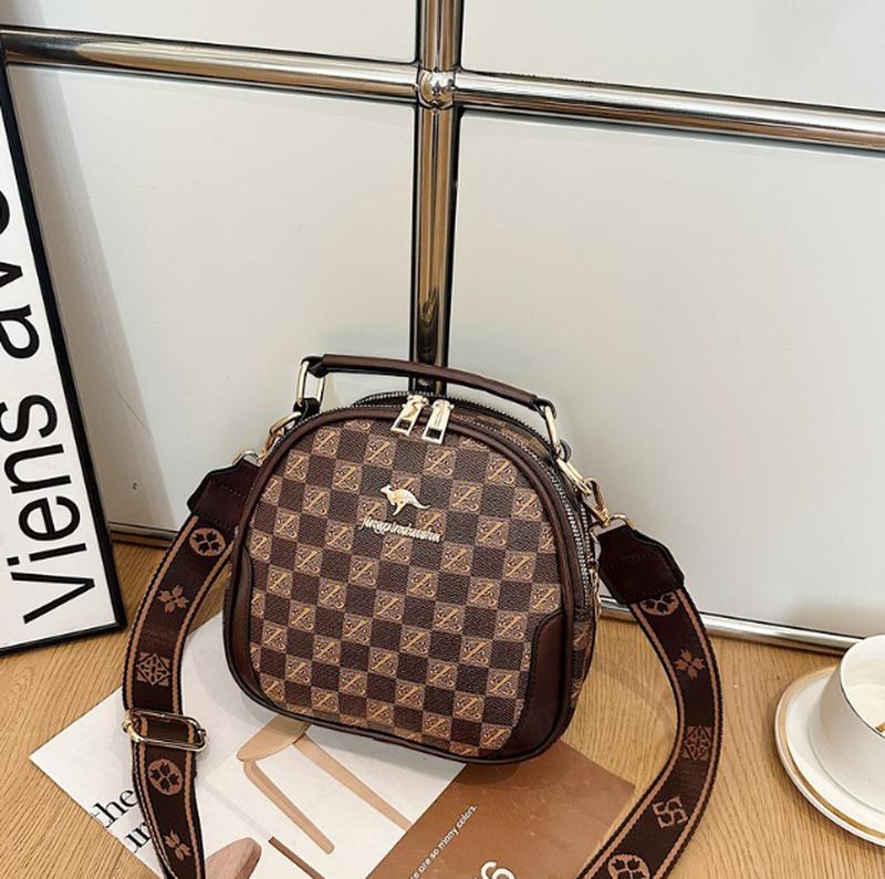 Женская сумочка на плечо кенгуру, сумка для девушек эко кожа клетка темно-коричневый