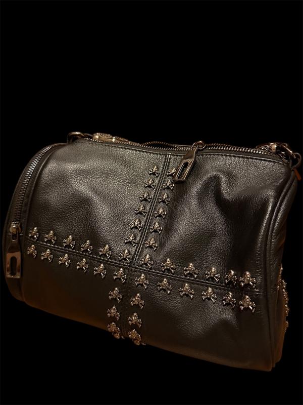 Чорна сумка Muzi Bag з декором у вигляді черепів — сміливий аксесуар для тих, хто любить виразний стиль і нестандартні деталі. Оригінальний дизайн з акцентними елементами надає образу характеру та індивідуальності. Сумка зручна у щоденному використанні: має практичний формат, продумане внутрішнє відділення та надійну фурнітуру. Глибокий чорний колір у поєднанні з декоративними черепами робить модель універсальною для міських, casual та street-style образів. За деталями пишіть в особисті💘