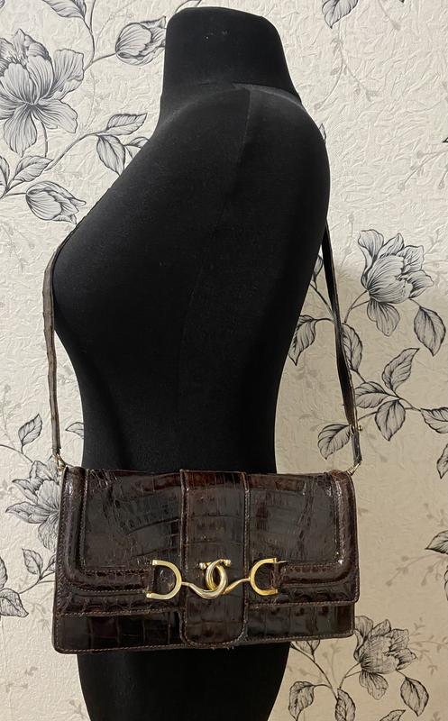 Сумка з шкіри крокодила ручної роботи! Вінтажна! Є мілкі нюанси, показала на фото і ще роблю додаткові фото . Ручка зʼємна , також можна подовжити, або вкоротити - показала на фото. Внутрі сумка має три відділи з коровʼячої шкіри. Розмір: 26 см х 14-15 см. Довжина ручки як на першому фото 92 см. Довжина як на фото 2 - 51 см разом з фурнітурою. Повернення немає. Доставка за рахунок покупця