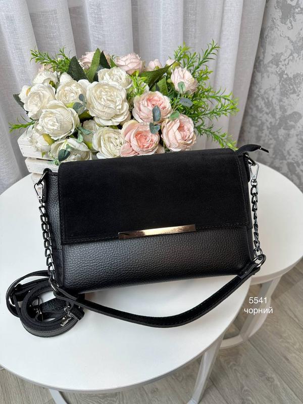 Женская стильная и качественная сумка из натуральной замши и эко кожи черная