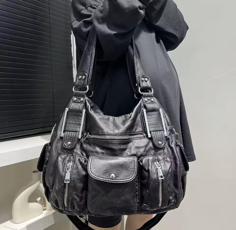 Сумка большая черная, y2k, гранж. Сумка вместительная и имеет два отдела, также много карманов.