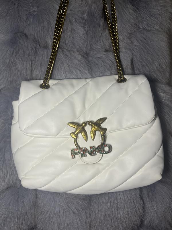 Стильна біла сумка PINKO 🤍 Елегантна, трендова та дуже містка. Якісна еко-шкіра, фірмова фурнітура із золотистим ланцюжком. Підійде як на кожен день, так і для виходу. Стан відмінний 📦 відправка Укрпошта/Нова пошта 💬 Пишіть у приват — відповім на всі питання