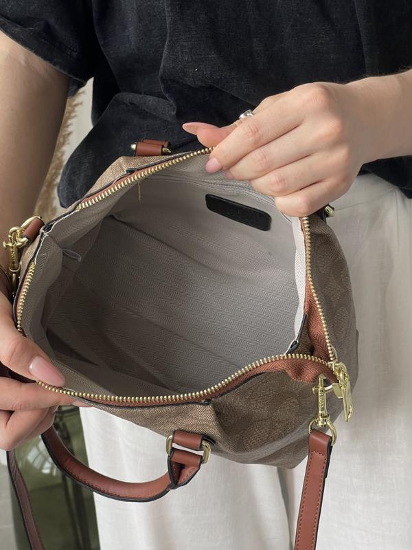 код: коричневый 20356-1 коричнево-бежевий 20356-2 бело-бежевый 20356-3 Сумочка изготовлена из структурированной эко-кожи. Имеет одно большое основное отделение, внутри открытый карман и еще один на молнии. Подкладка с нашитым логотипом и фирменной биркой с QR-кодом. Фурнитура металлическая, брендированная. Ремешок регулируется, максимальная длина - 120 см. Размер: 25х20х13см Материал: эко-кожа