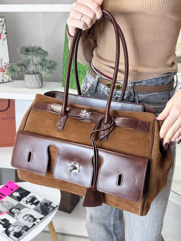 829246 Новинка 💝👜 Сумка Бестселер сезону Материал: натуральная кожа Размер: 37/27/17см на молнии ✅ По бокам кнопки меняют форму и размер Цвет: черный комби; шоколад комби; фурнитура серебро комбинированное замш 2 отделения в середине